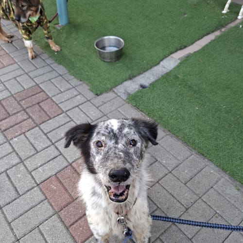 Taxi最特別的就是混到非常漂亮的毛色,很愛吃,毛底下是有點強壯的身材,看到人會很興奮激動,喜歡聞東西